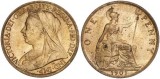 QUEEN VICTORIA, bun head, bronze farthing, 1895 (S.3958). Brown and red, nearly uncirculated.
