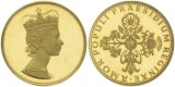 GERMANY, proof gold medallic issue three ducat coin, undated (.980 fine, 10.4g, 25mm) commemorating Queen Elizabeth II visit to Germany, May 1965, obverse, crowned bust ...