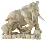 JAPAN, Meiji period, late 19th century, tusk carving group depicting an elephant with her two calves in a natural setting, (100mm wide). Very fine.