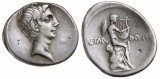 AUGUSTUS, (27 B.C. - A.D. 14), silver denarius, Lyons mint, issued 15-13 B.C. (3.79 g), obv. bare head of Augustus to right, around AVGVSTVS DIVI ...
