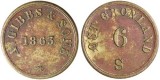 GREENLAND, Ostgronland, A.Gibbs & Sons, brass 6 skilling token, 1863 (KM.Tn12). Oxidised, very fine and rare.