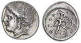 LOKRIS, Lokris Opuntia, (c360s B.C.), silver stater, (12.15 g), obv. head of Persephone left, wreathed with three wheat leaves and wearing a triple pendant earring, ...