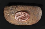 ROMAN, (1st - 3rd century A.D.), carnelian intaglios, attached to fragments of rings, one depicting a winged Griffin seated left, another depicting a satyr seated ...