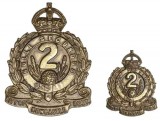 AUSTRALIA, 2nd Infantry Battalion (City of Newcastle Regt), hat badge (51mm) and collar badge (30mm) in brass, 1930-42. Very fine. (2)