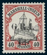 NEW GUINEA, surcharged stamps from Marshall Islands, 5mm apart for GRI and surcharge, 1d on 40pf. black and carmine, single example, (SG 56j), (CV £13,000). ...