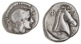 THESSALY, Pharsalos, silver triobol, 440-425 B.C., (2.95 g), obv. Athena head to right in close fitting helmet, rev. horse's head to right in incuse square, ...