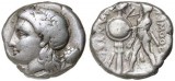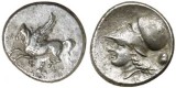 CORINTHIA, Corinth, (350-306 B.C.), silver stater, (8.15 g), obv. Pegasos flying to left, Q below, rev. head of Athena to left, wearing Corinthian helmet, crotalus ...