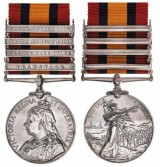 QUEEN'S SOUTH AFRICA MEDAL 1899, (type 3 reverse), - five clasps - Cape Colony, Orange Free State, Transvaal, South Africa 1901, South Africa 1902. 1041 ...