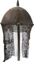 MOGUL HELMET, 18th century, constructed of steel in three sections with each section joined by chain mail, with a long, heavy chain mail curtain that ...
