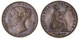 QUEEN VICTORIA, young head, copper farthing, 1839 (S.3950). Uneven tone on obverse, attractive blue red tone overall, nearly uncirculated/uncirculated.