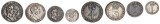 ANNE, after the Union, sixpences, 1707 E (S.3620); 1710 roses and plumes (S.3624); 1711 plain (S.3619) (3). Fine - very fine. (5)