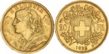 SWITZERLAND, twenty francs, 1898B (KM.35.1). Extremely fine.
