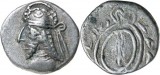 PERSIS, Kingdom of, Mancucithr (Mancihr) II, (c.A.D. second century), silver hemidrachm, (1.47 g), obv. draped bust to left pointed beard, with diademed tiara, to right ...