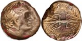 CYRENAICA, Cyrene, (c.322-313 B.C.), AE 14, (3.75 g), obv. head of Apollo Carneius to right, rev. three silphium plants, (S.6341, BMC 198, SNG Cop. 1226). ...