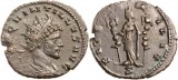 GALLIENUS, (A.D. 253-268), antoninianus, (3.78 g), Antioch mint, obv. around GALLIENVS AVG, radiate and draped bust right, rev. VIRTVS AVG, Soldier standing right, holding long ...
