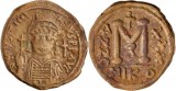 BYZANTINE COINS, AE issues, some are folles, including, Tiberius Constantine (DOC 31a, 44); Maurice Tiberius (DOC 28c, 120b, 160 (illustrated), 186, 262.4); Phocas, (DOC 24d, ...