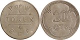 FISON INDUSTRIES, halfpenny in off-white plastic (25mm), obverse and reverse identical, denomination in centre, above, 'F.I.', below, 'Canteen'; another for penny (rectangular 22x34mm); Munition Makers, ...