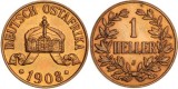 GERMAN EAST AFRICA, proof bronze one heller 1908J (KM.7). Brilliant gold and brown fields, FDC.