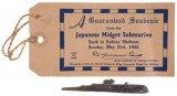RAN RELIEF FUND & KING GEORGE'S FUND FOR SAILORS, July 30, 1942, Guaranteed Souvenir from the Japanese Midget Submarine Sunk in Sydney Harbour, Sunday, May ...
