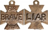 BRITISH MADE WWI GERMAN IRON CROSS PROPAGANDA MEDAL, For Brave Deeds, Liar, cast in brass (42.5x43.5mm), with ring top suspension. Crude, otherwise very fine.