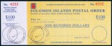 BRITISH SOLOMON ISLANDS, Postal Orders, 1990 unissued 20c (4c), 40c (4c), 60c (4c), $2 (8c), $3 (11c), $4 (11c) all with counterfoils; 1989 issued $5 ...