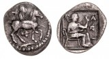 THESSALY, Larissa, (c.440-420 B.C.), silver trihemiobol 13mm, (1.19 g), obv. horseman riding right, holding spear; below, lions head right, **L* ARI, the nymph Larissa seated ...