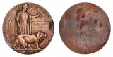 WWI MEMORIAL PLAQUE, with name removed and inscribed, 'St Valery/1940', with cut grooves at right edge, probably for fitting to a display stand, also illegible ...