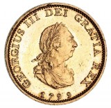 GEORGE III, third copper issue, farthing, 1799 gilt copper proof (S.3779; Peck 1272). Brilliant, surface marks, otherwise good extremely fine and scarce.