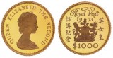 HONG KONG, Elizabeth II, proof gold one thousand dollars, 1975 (KM.38), Royal Visit commemorative. In case of issue, FDC.