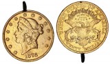 USA, TWENTY DOLLARS OR DOUBLE EAGLE, 1878S, Liberty head. Copper loop mount at top, otherwise very fine.
