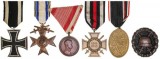 GERMANY, WWI Group of Six: Iron Cross second class; Bavarian Military Merit Cross with Swords; Austro-Hungarian Bravery Medal ; Germany, Honour Cross with Swords 1914-1918; ...