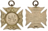 C.H.A. (Canterbury Hockey Association), fob medal, handcrafted in silver (33x33mm), no maker, reverse inscribed 'C.H.A./5th Grade/5 A-Side/1916/J.Hearfield'; fob medal, hand engraved in silver and gold ...