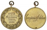 MIRAMAR SCHOOL (WELLINGTON), dux medal, 1930, stock medal in gold (9ct, 9.8g, 26mm), by Bock (Wellington), ring top suspension, reverse inscribed 'Constance J.Adlam'. Good very ...