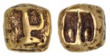 INDONESIA, Srivijaya Kingdom, (c.680-1250 A.D.), gold masa of twenty rattis (2.38 g) on square flan, obv. Devanagari 'Ta', rev. two rectangular incuses with pellet in ...