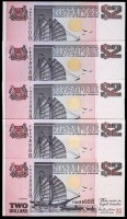SINGAPORE, two dollars (1998) ascending 8's in serials, HW 000008, FW 000088, FW 000888, FW 008888, FW 088888 (P.37). Set up in a display pointing ...