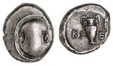 BOIOTIA, Thebes, (Circa 395-338 B.C.), silver stater (11.94 g), Klee[s] Magistrate, obv. Boiotian shield, rev. amphora with thymiaterion in field to right, across fields K**L* ...
