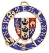 NEW ZEALAND, badge in voided silver and enamel (48mm), by Spencer, London, hallmark for Birmingham 1929, ring top suspension, possibly part of a lodge jewel. ...