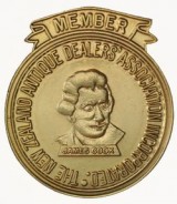 THE NEW ZEALAND ANTIQUE DEALERS' ASSOCIATION INCORPORATED, Member's badge, c1970s, struck in gilt (28x25mm), by Bock (Wellington), pin-back. Extremely fine.