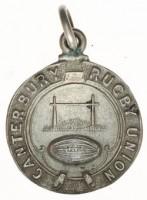 CANTERBURY RUGBY UNION, fob medal, struck uniface in silver (24mm), by G.T.W. (G.T.White, Christchurch), ring top suspension, reverse inscribed 'Seven-A-Side/R.Thompson/1923'. Very fine.