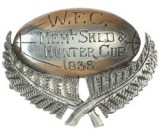 W.F.C. (Whatatutu Football Club), handcrafted in silver (28x22mm), by Stoneham (A.Stoneham, Wellington & Dunedin), pin back, obverse inscribed 'W.F.C./Meml.Shld. &/Hunter Cup/1938'. Good very fine.