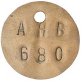 A.H.B. (presumed attribution - Auckland Harbour Board), tool check, hand fashioned in copper (38mm), no maker, pierced at top, impressed number '680' (G.-; TMR.-). Very ...
