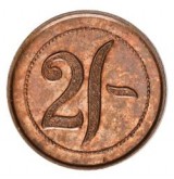(BARBER'S CHECK), c1920s-1940s, 2/- struck in copper (21mm), die upset 180 degrees (G.-; TMR.-). Mint red, nearly uncirculated.