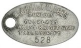 W.J.P.MCCULLOCH, key tag, uniface, struck in aluminium (38x22mm), no maker, pierced at left, numbered 528, reverse inscribed 'L.J.Fulton' (G.-; TMR.-). Fine.