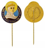 BADGES MADE IN AUSTRALIA, 1000 Years of Christianity in Ukraine badge in gilt and enamel (23x25mm), on the reverse marked, 'World Federation Of Ukrainian Women's ...