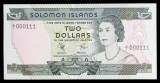SOLOMON ISLANDS, British Administration, Solomon Islands Monetary Authority (1977) and (1981) issues, two dollars (1977) A/1 000111, A/2 000231, Z/1 007730 (replacement note) (P.5a) collectors ...