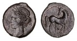 ZEUGITANA, Punic Coinage, Carthage, (c.221-210 B.C.), AE 21, (6.59 g), obv. head of Tanit or Kore to left, wearing necklace, rev. horse standing to right, ...