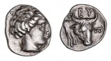 MACEDON, King of, Demetrios I Poliorketes, (306-283 B.C.), silver tetradrachm, (16.92 g), uncertain Macedonian mint, issued c.290 B.C., obv. diademed and horned head of Demetrios ...