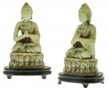 ASSORTED BUDDHIST STATUES, carved from stone, wood, and tusk, some on bases, various depictions of Buddai Buddha and an old beared man. Fair - fine. ...