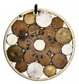 USA, BOYD'S GALVANIC BATTERY MEDICINAL AMULET, patented Jan. 17 1878, 14 different metal shapes mounted in a circular metal ring, claimed to cure all known ...