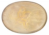 MOTHER-OF-PEARL BROOCH, oval in shape (64x45mm), set in sterling silver frame, by H.G.Rogers, pin-back, features an engraved figure of a seated man in period dress ...